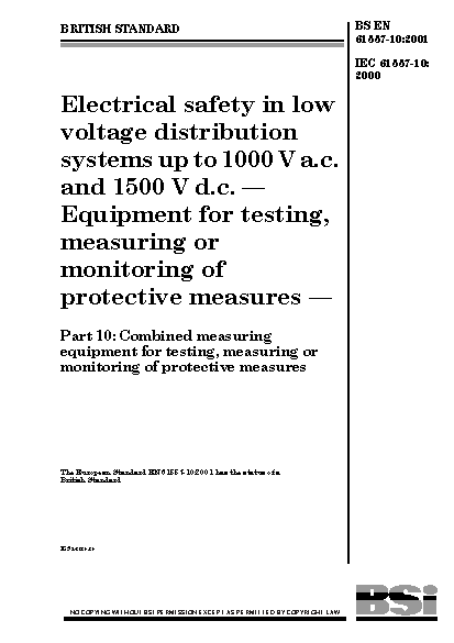 Electrical safety in low voltage distribution systems up to 1000 V a.c. and 1500 d.c. Equipment for testing, measuring ormonitoring of protective measures Combined equipment or monitoring