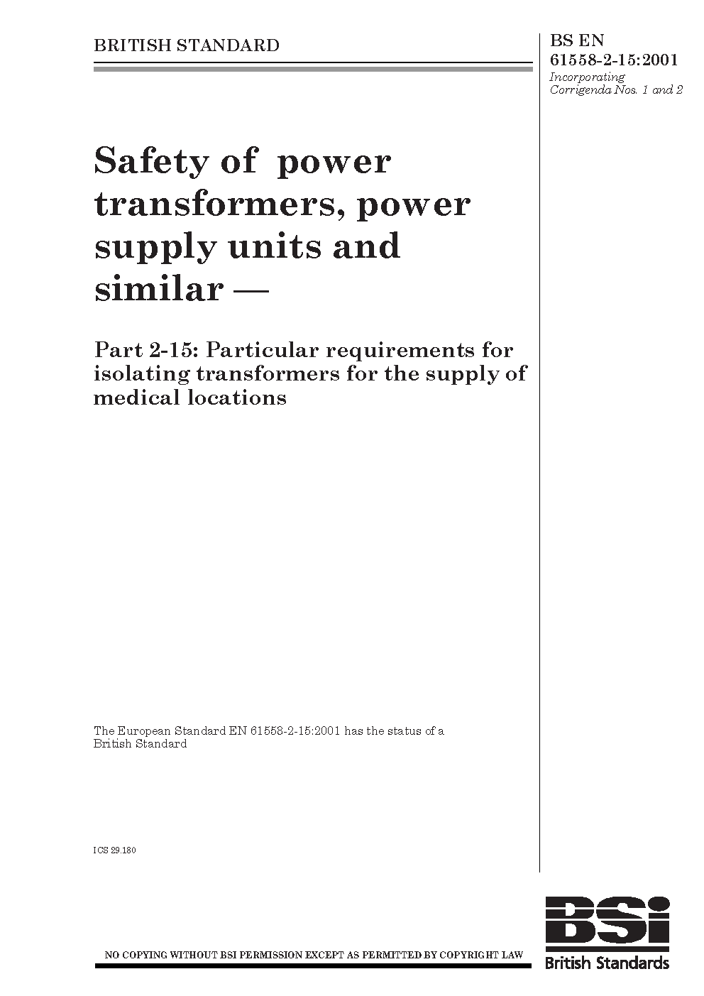 BS EN 61558-2-15:2012