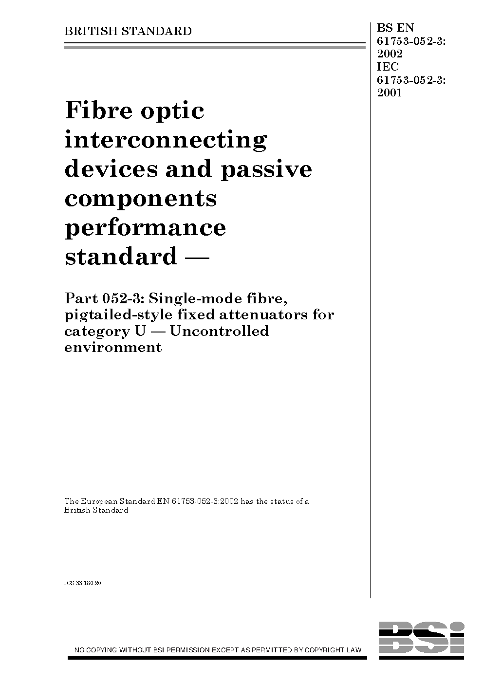 Fibre optic interconnecting devices and passive components performance standard. Single-mode fibre, pigtailed-style fixed attenuators for category U Uncontrolled environment