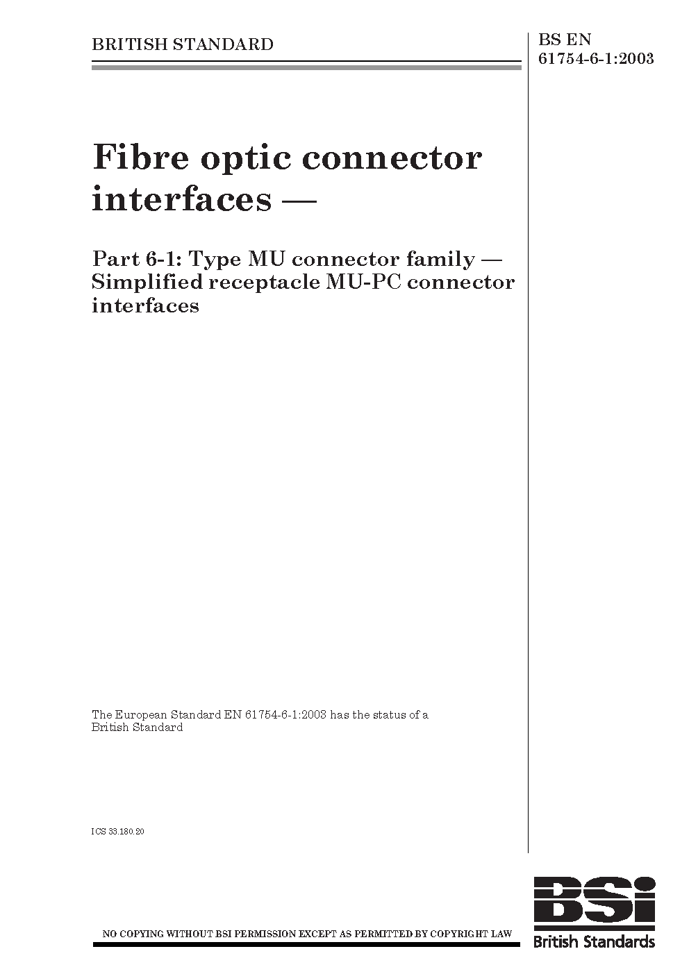 Fibre optic connector interfaces Type MU family. Simplified receptacle MU-PC