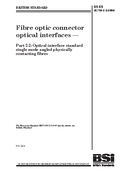 Fibre optic connector optical interfaces Optical interface standard single mode angled physically contacting fibres