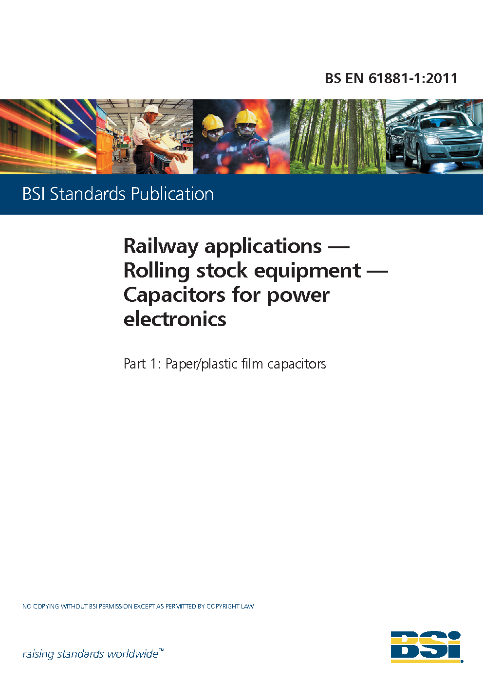 Railway applications. Rolling stock equipment. Capacitors for power electronics Paper/plastic film capacitors