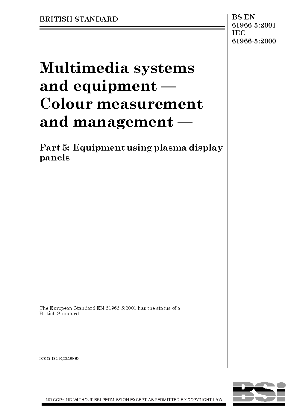 Multimedia systems and equipment. Colour measurement management Equipment using plasma display panels