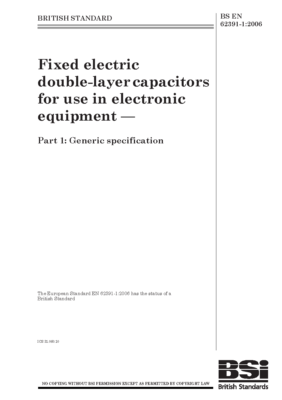 Fixed electric double-layer capacitors for use in and electronic equipment Generic specification