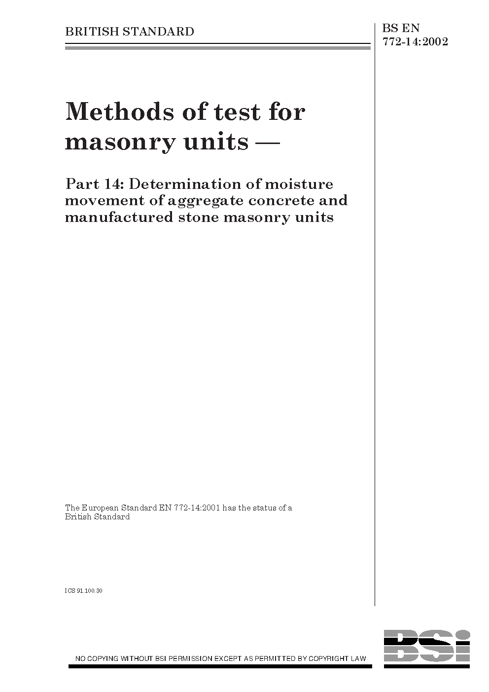 Methods of test for masonry units Determination moisture movement aggregate concrete and manufactured stone