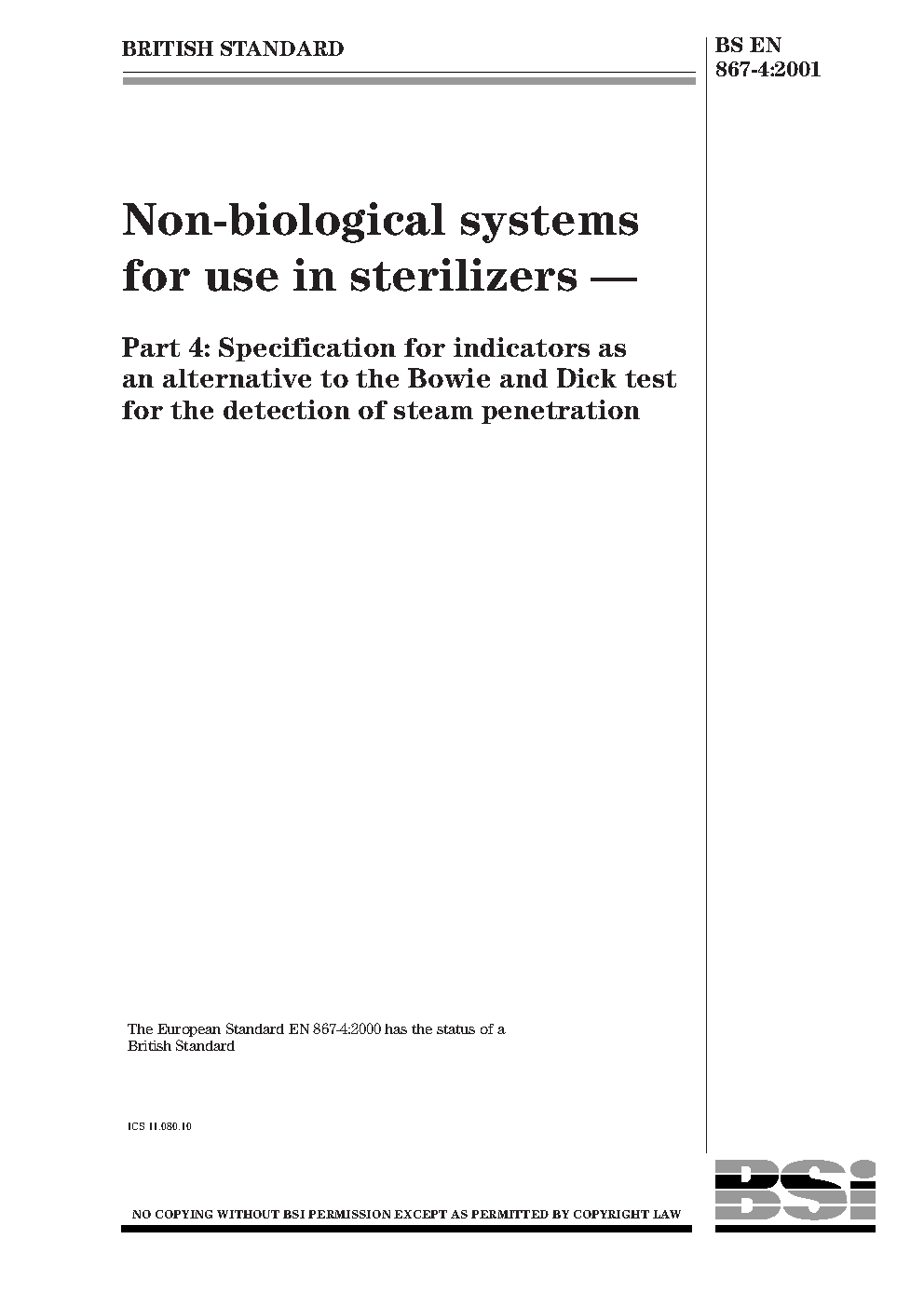 Non-biological systems for use in sterilizers Specification indicators as an alternative to the Bowie and Dick test detection of steam penetration