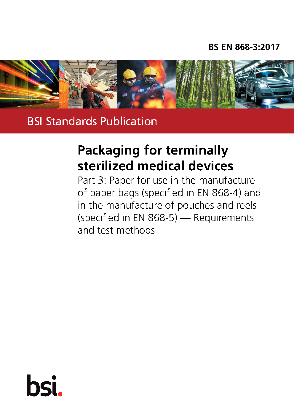 Packaging materials and systems for medical devices which are to be sterilized Paper use in the manufacture of paper bags (specified EN 868-4) pouches reels 868-5). Requirements test methods
