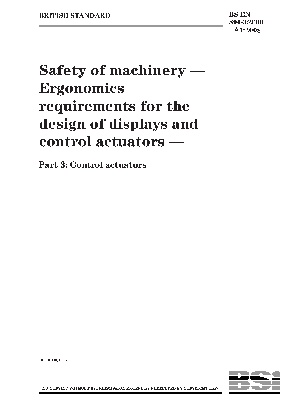 Safety of machinery. Ergonomics requirements for the design displays and control actuators Control