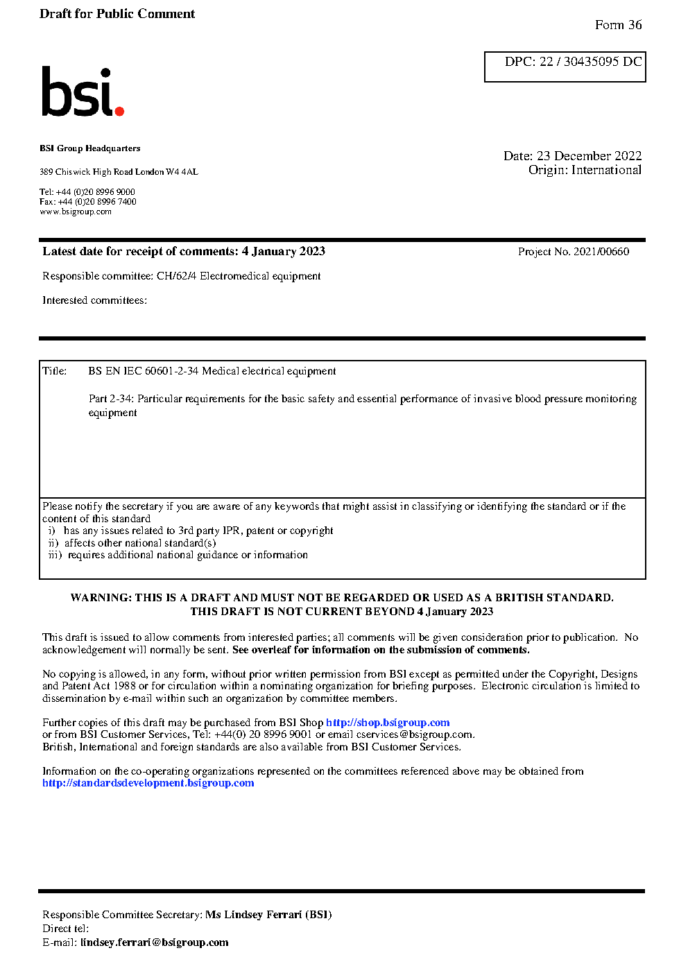 Medical electrical equipment Particular requirements for the basic safety and essential performance of invasive blood pressure monitoring