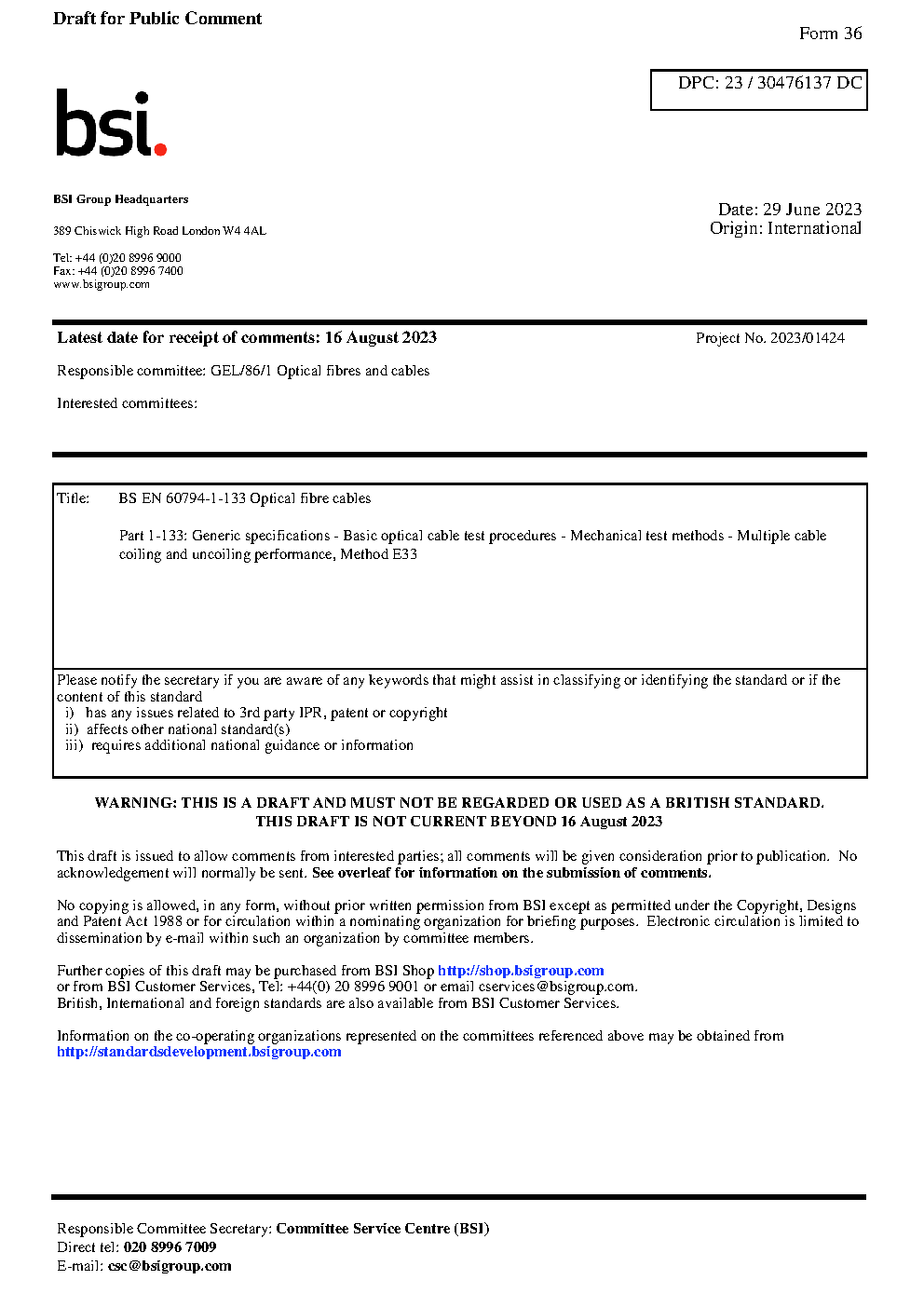Optical fibre cables Generic specifications. Basic optical cable test procedures. Mechanical methods. Multiple coiling and uncoiling performance, Method E33