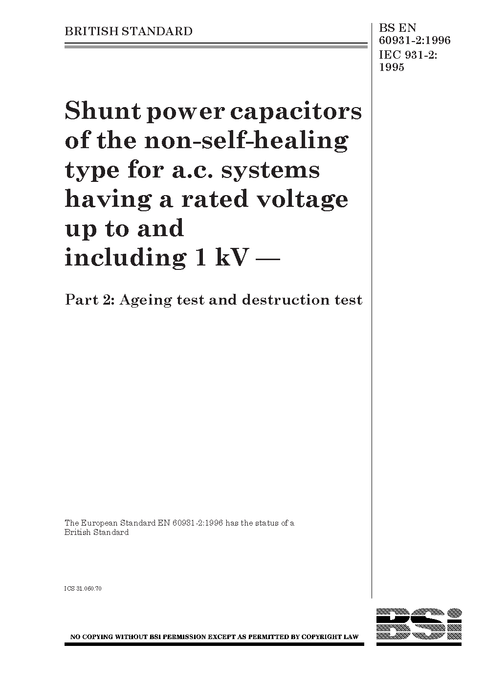 Shunt power capacitors of the non-self-healing type for AC systems having a rated voltage up to and including 1 000 V Ageing test destruction