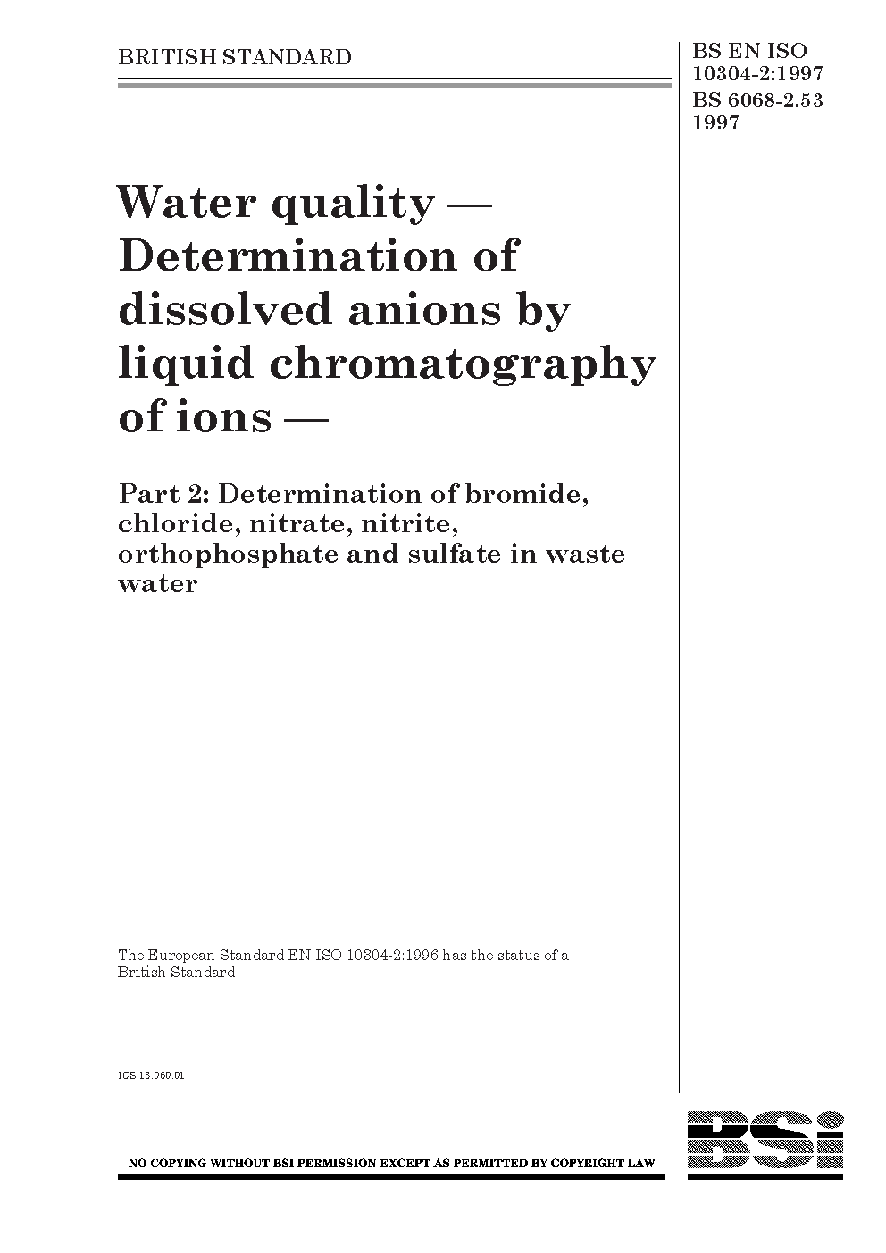 Water quality. Determination of dissolved anions by liquid chromatography ions bromide, chloride, nitrate, nitrite, orthophosphate and sulfate in waste water