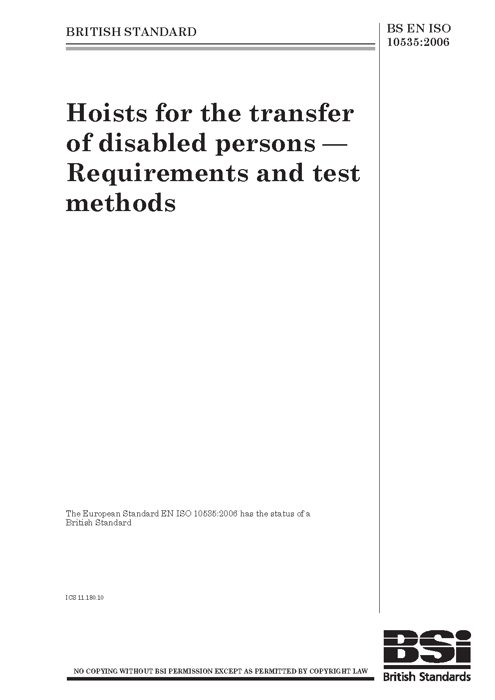 Hoists for the transfer of disabled persons. Requirements and test methods