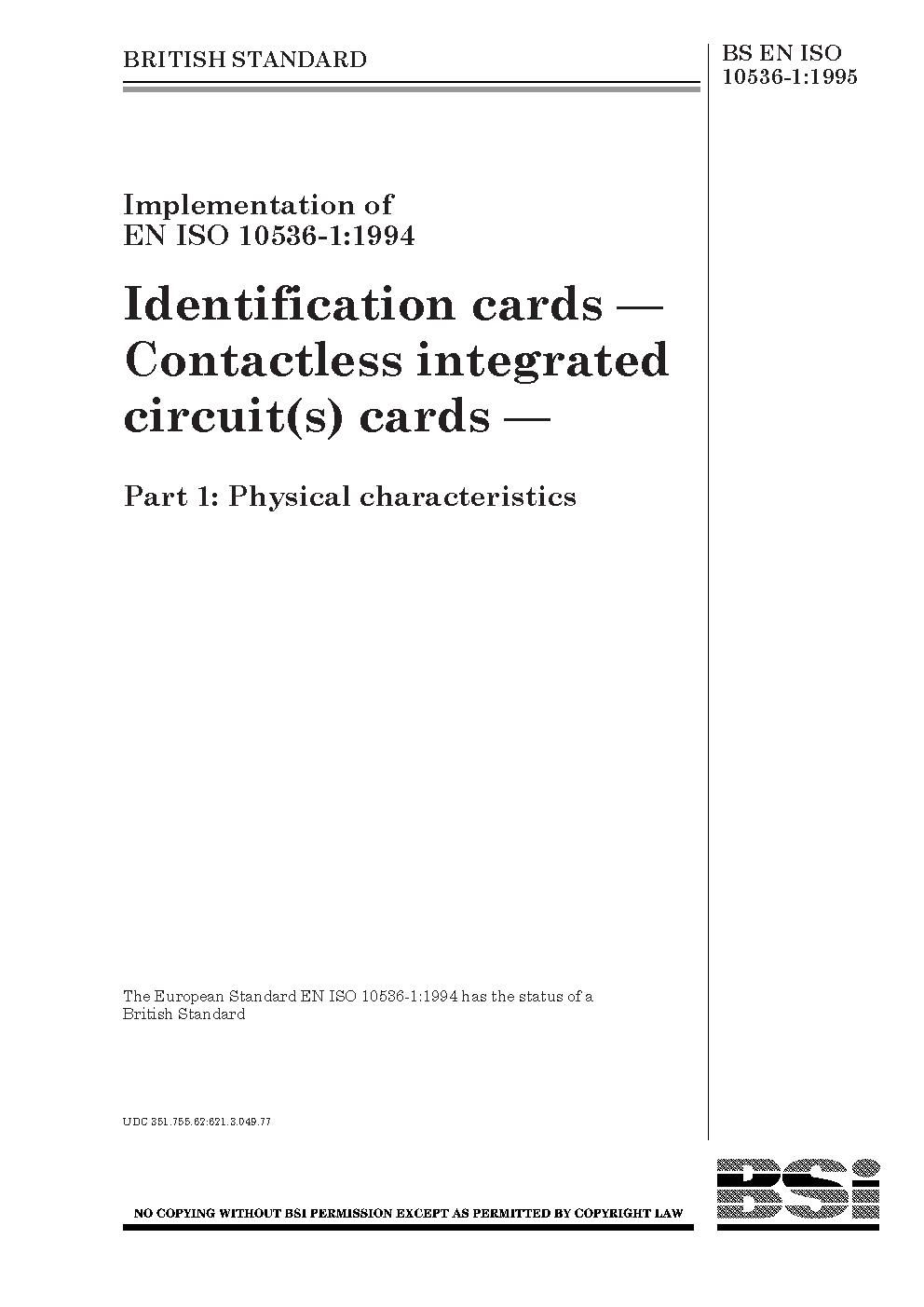 Identification cards. Contactless integrated circuit(s) cards Physical characteristics