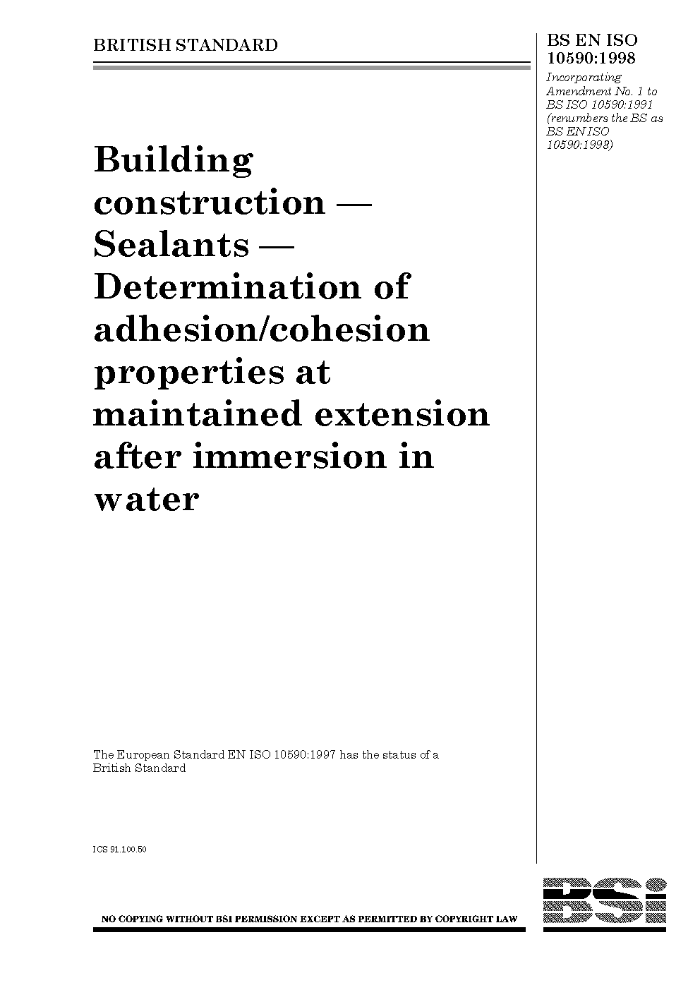 Building construction. Sealants. Determination of adhesion/cohesion properties at maintained extension after immersion in water