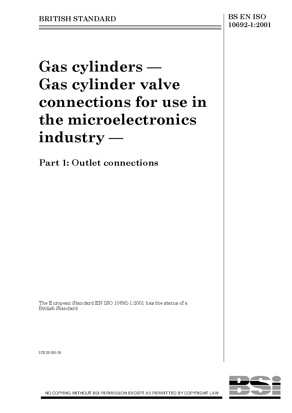 Gas cylinders. cylinder valve connections for use in the microelectronics industry Outlet