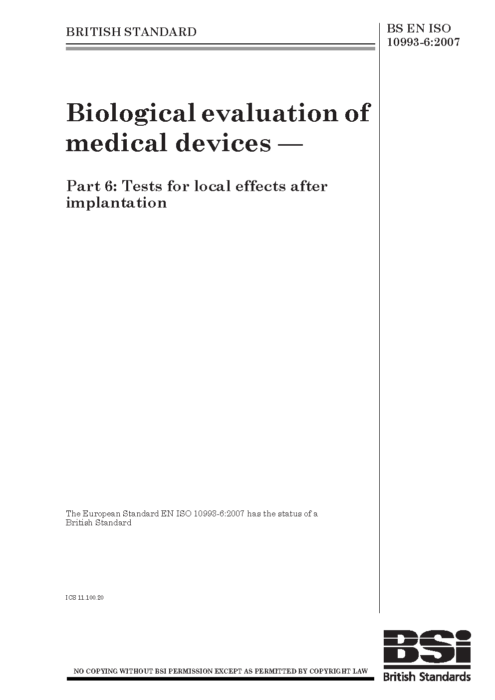 BS EN ISO 10993-6:2007