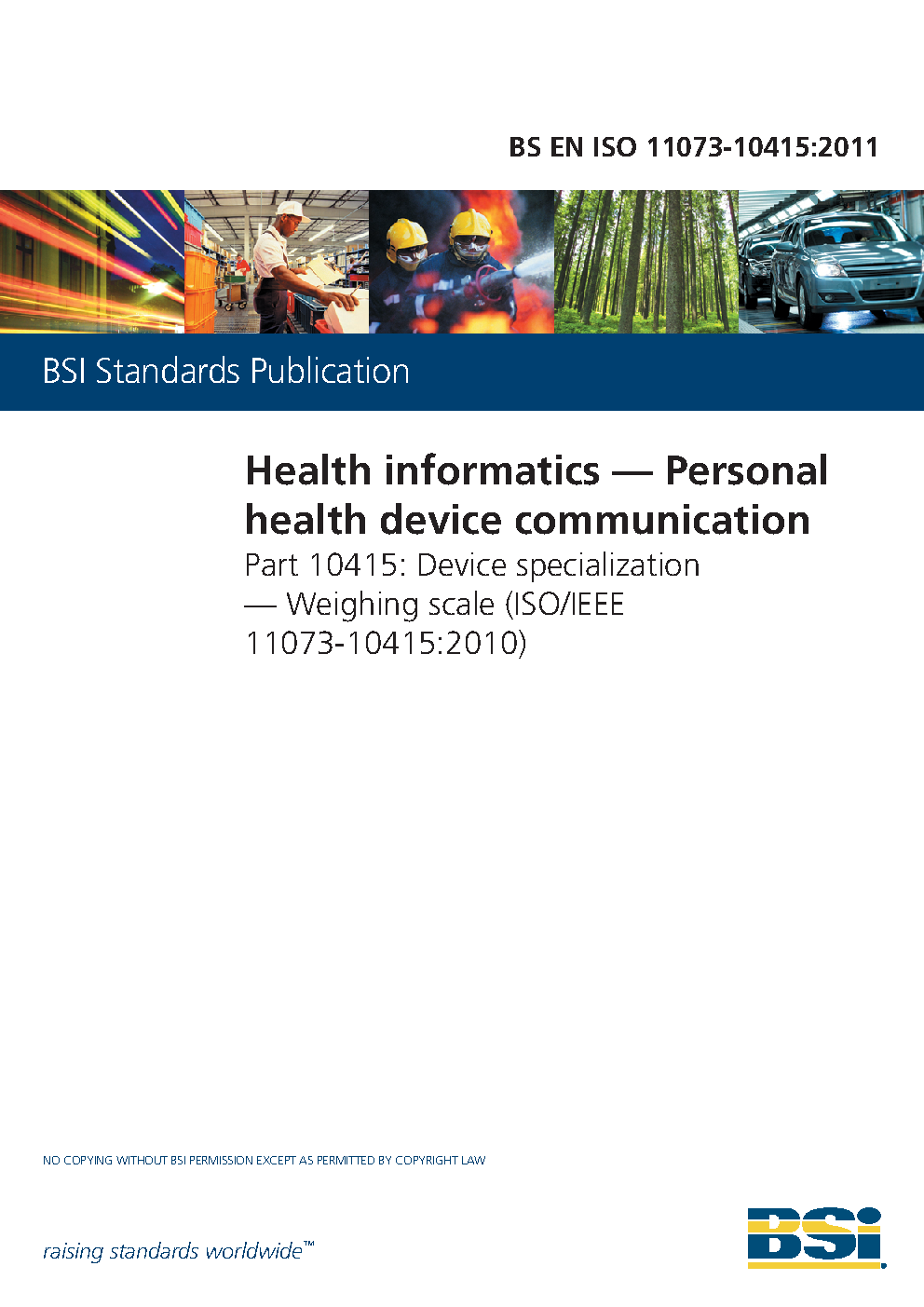 Health informatics. Personal health device communication Device specialization. Weighing scale