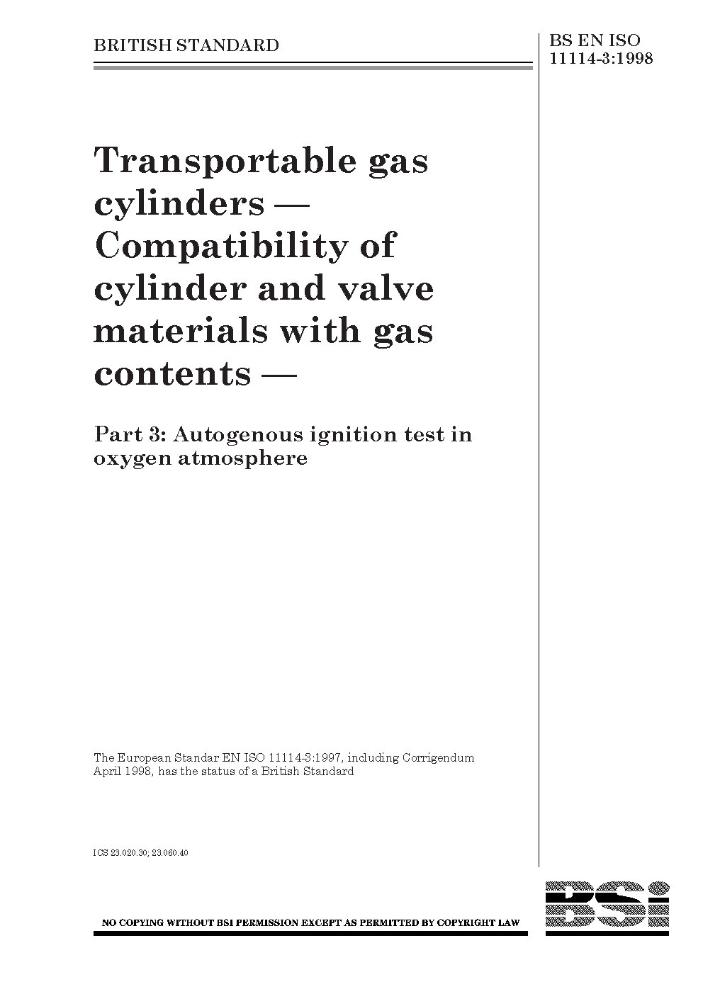 Gas cylinders. Compatibility of cylinder and valve materials with gas contents Autogenous ignition test for non-metallic in oxygen atmosphere