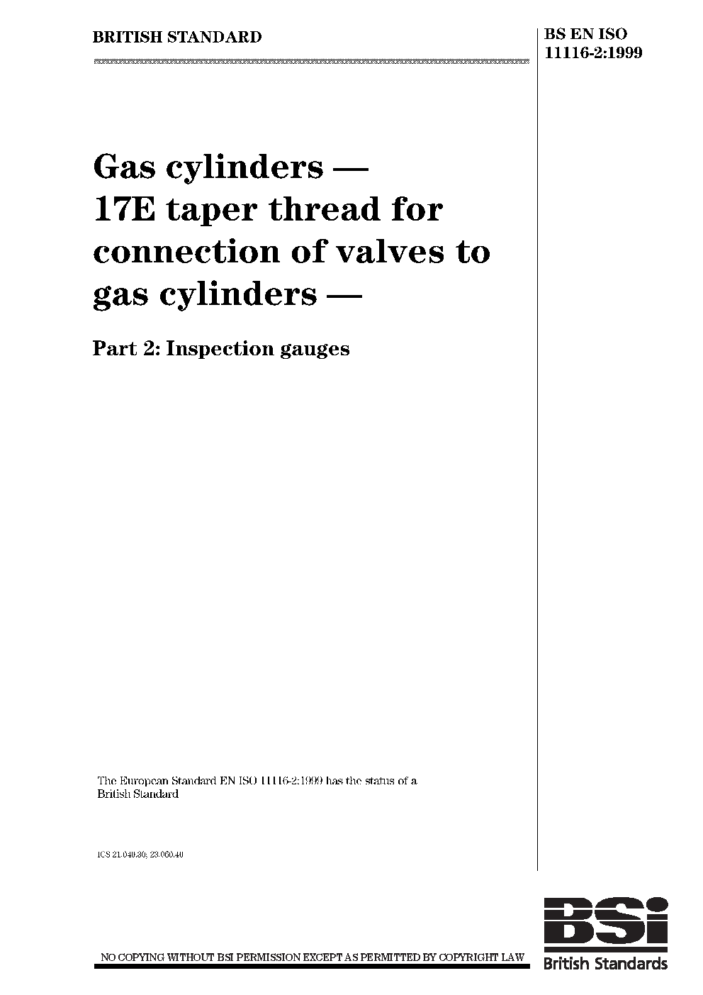 BS EN ISO 11116-2:1999