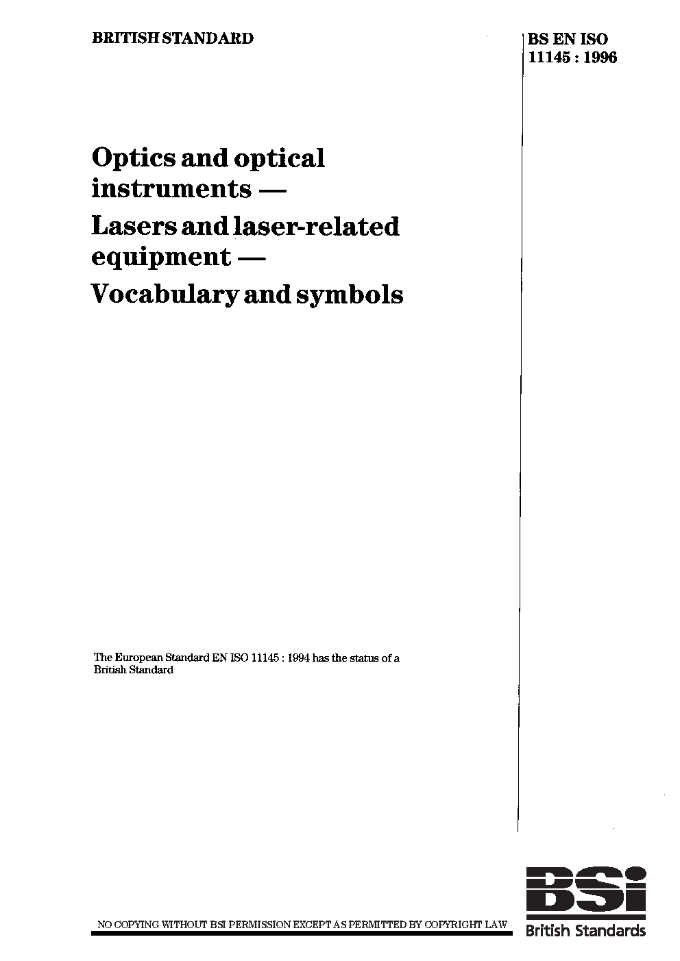 Optics and optical instruments. Lasers and laser-related equipment. Vocabulary and symbols