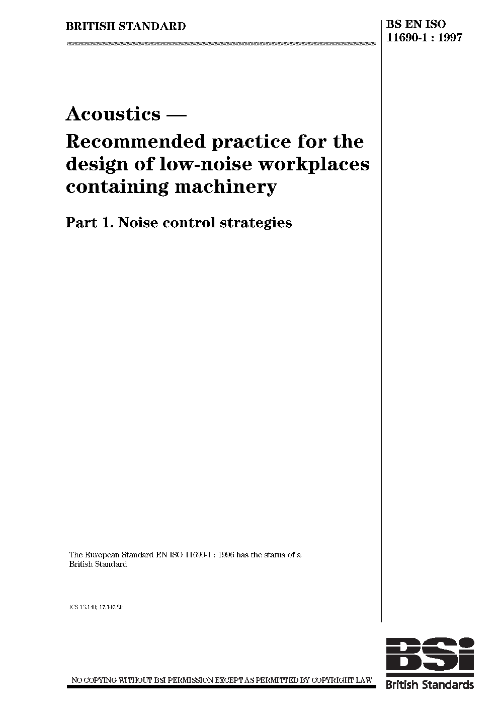 Acoustics. Recommended practice for the design of low-noise workplaces containing machinery Noise control strategies