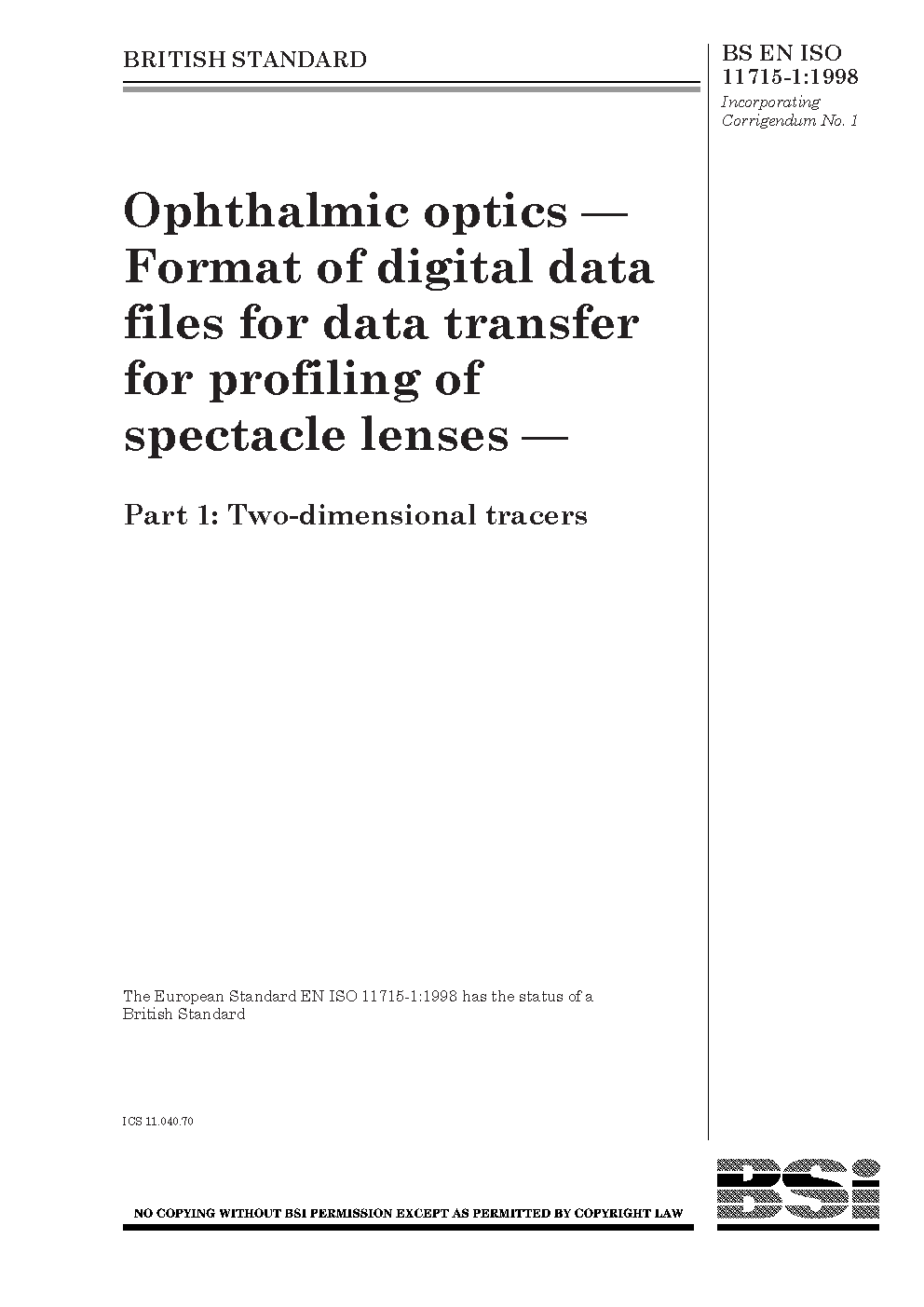 Ophthalmic optics. Format of digital data files for transfer profiling spectacle lenses Two-dimensional tracers