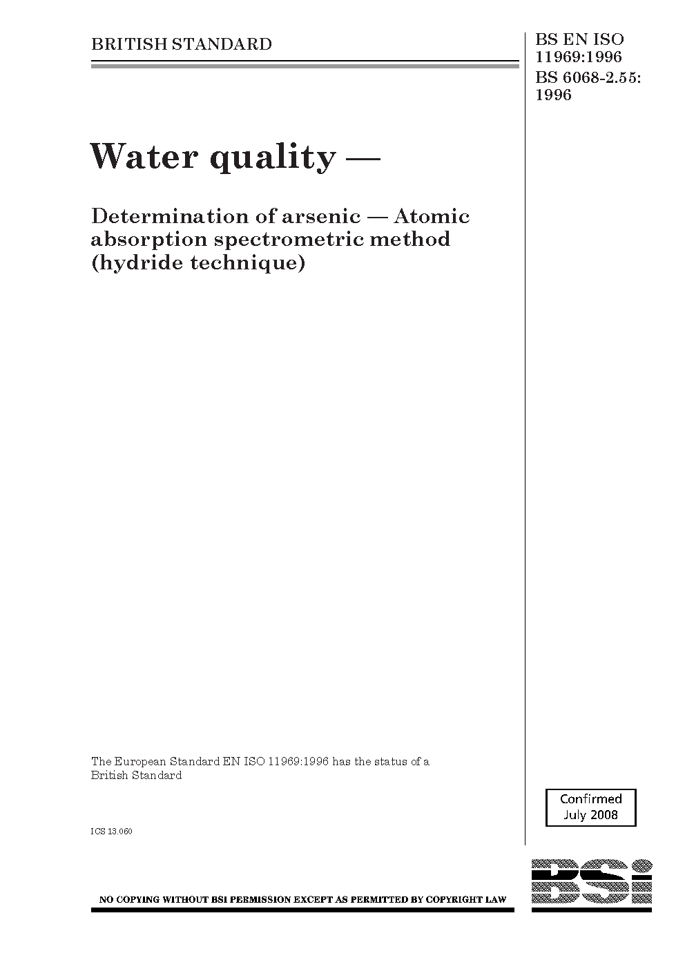 Water quality. Determination of arsenic. Atomic absorption spectrometric method (hydride technique)