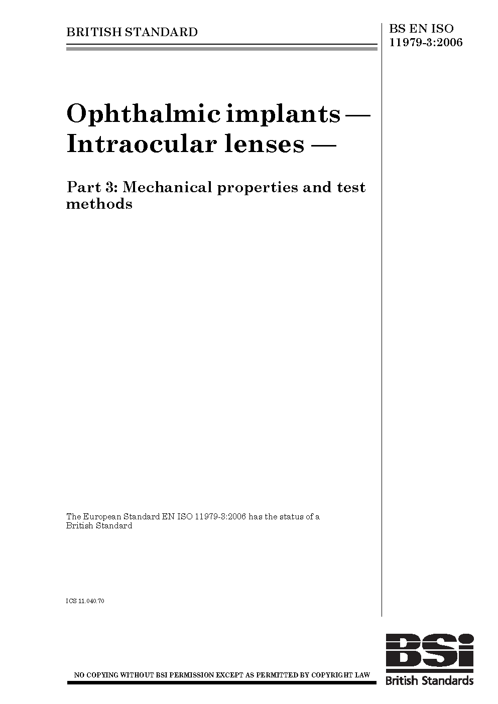 Ophthalmic implants. Intraocular lenses Mechanical properties and test methods