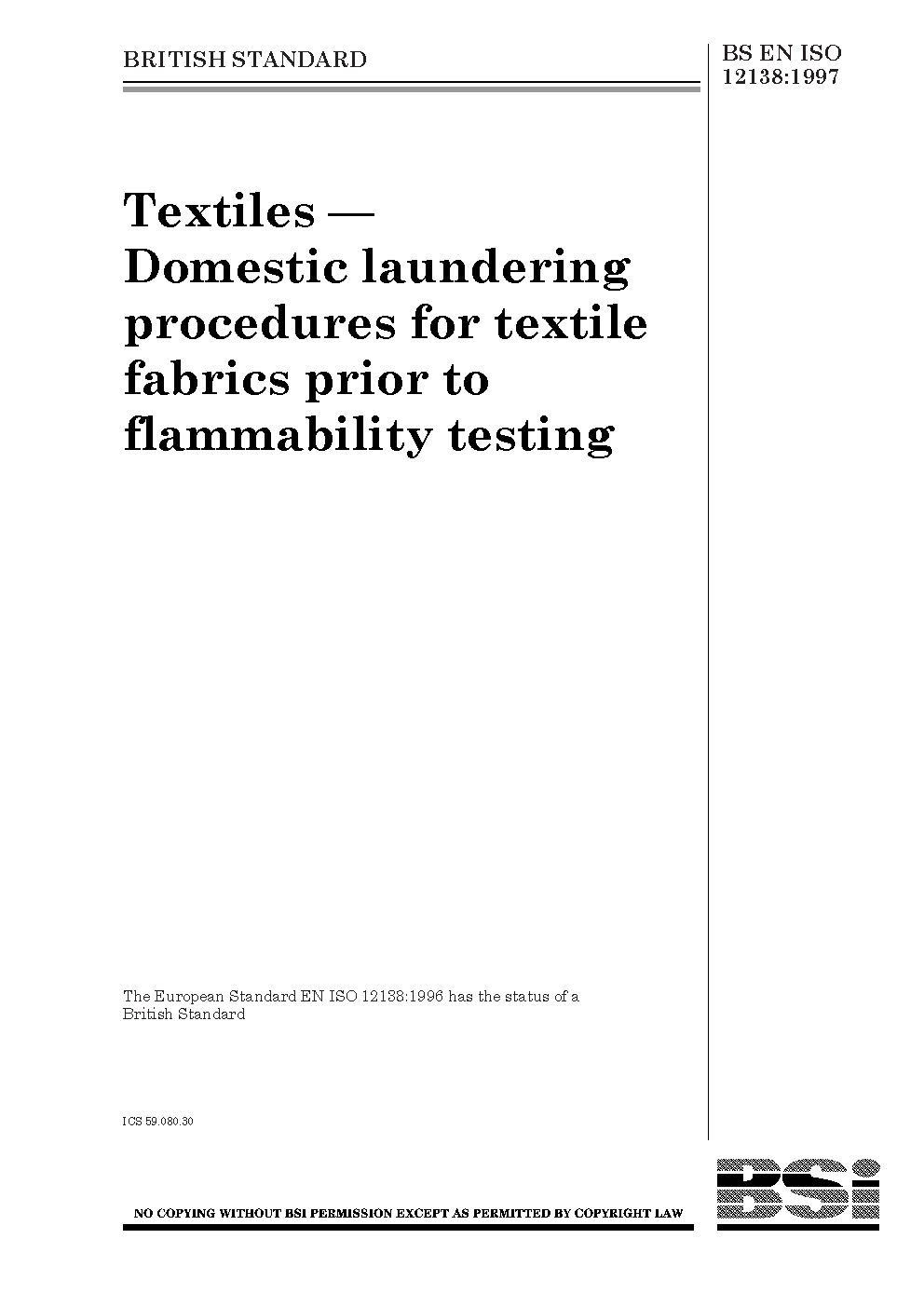 Testing conditions;Test equipment;Domestic;Washing tests;Laundering;Fire tests;Washing;Fabric testing;Flammability;Textile testing