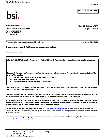 Water quality. Radon-222 Test method using two-phase liquid scintillation counting