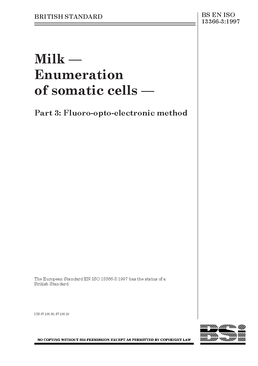 Milk. Enumeration of somatic cells Fluoro-opto-electronic method