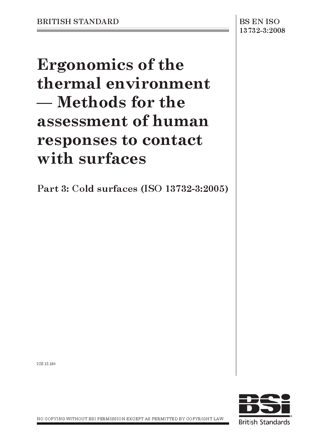 Ergonomics of the thermal environment. Methods for assessment human responses to contact with surfaces Cold