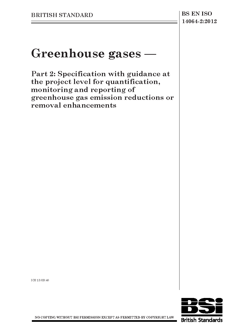 BS EN ISO 14064-2:2012