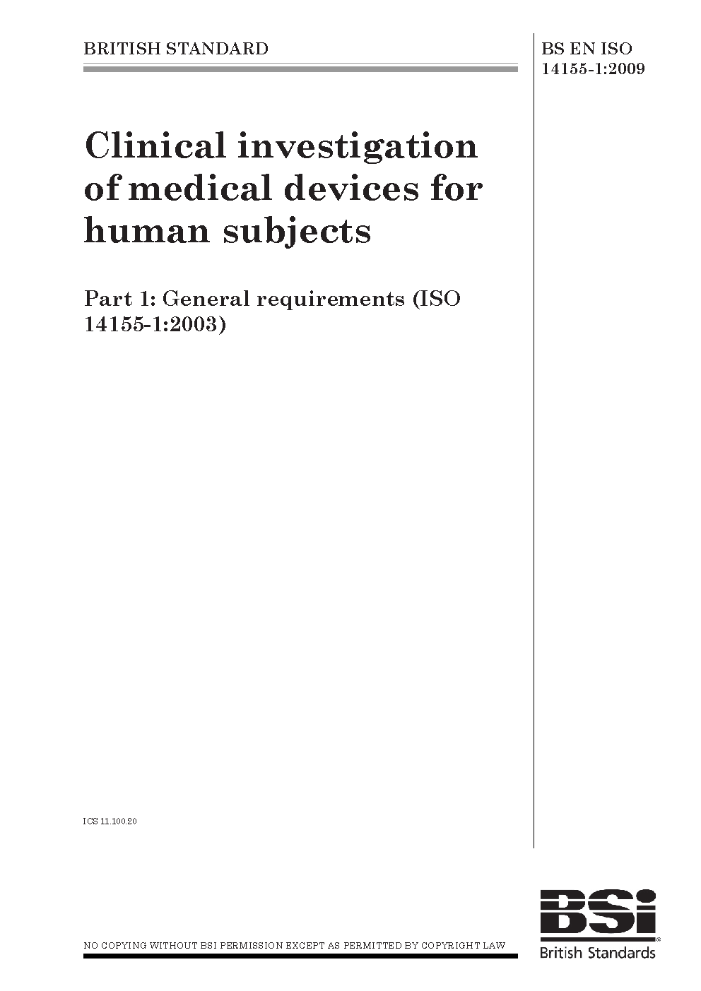 BS EN ISO 14155-1:2003