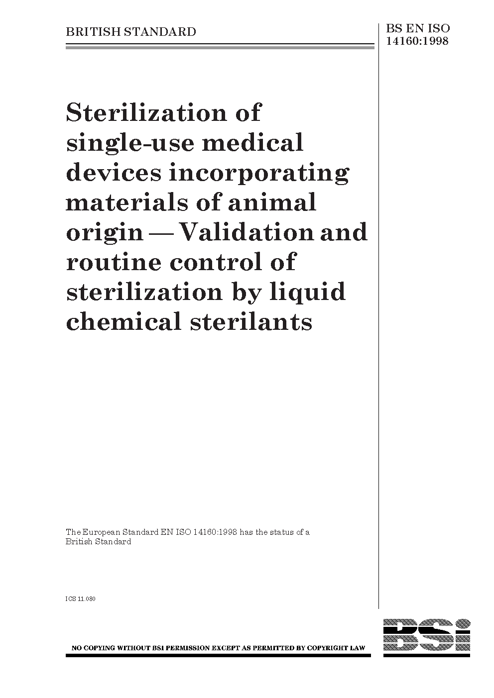 Sterilization of single-use medical devices incorporating materials of animal origin. Validation and routine control of sterilization by liquid chemical sterilants