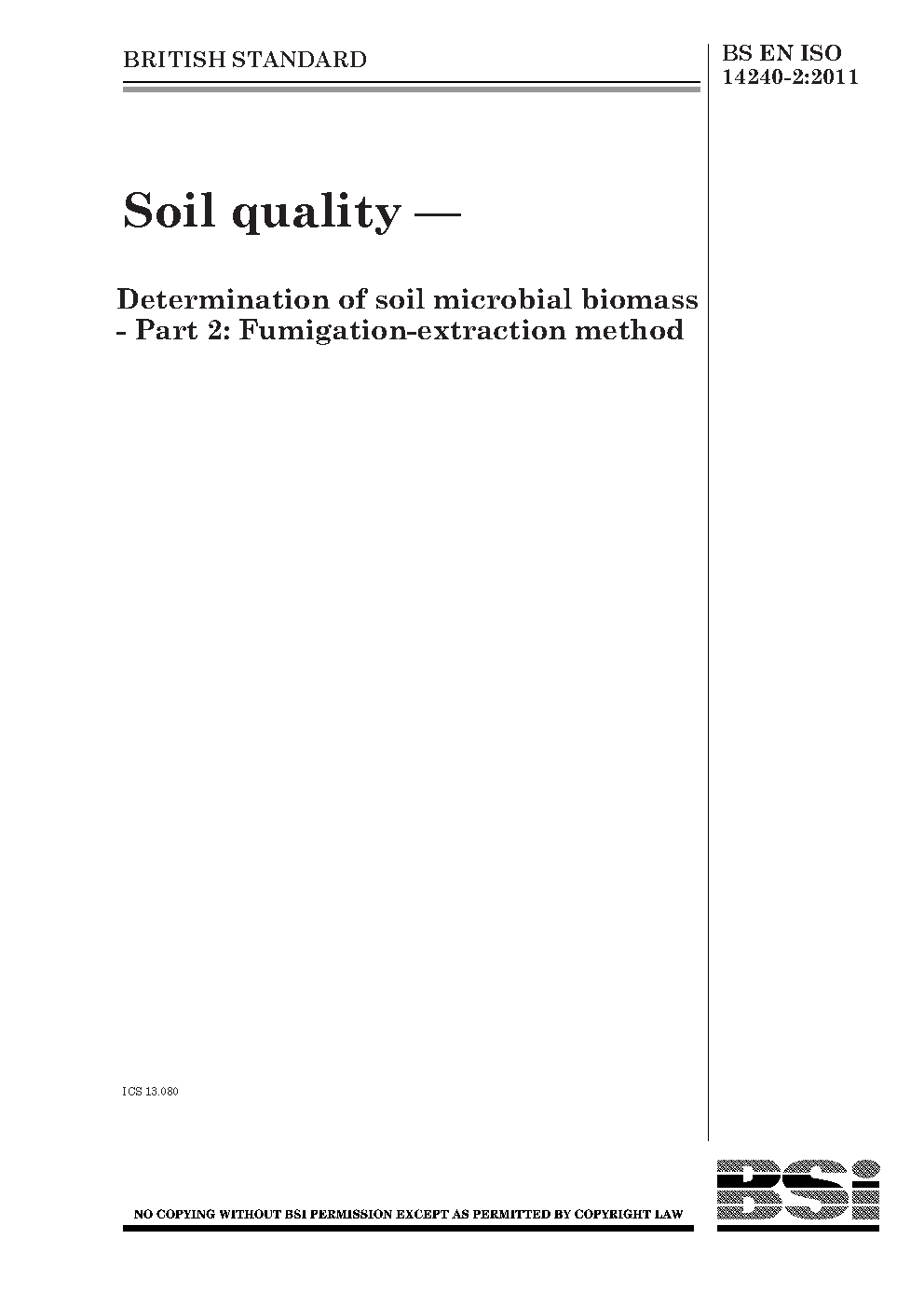 Soil quality. Determination of soil microbial biomass Fumigation-extraction method