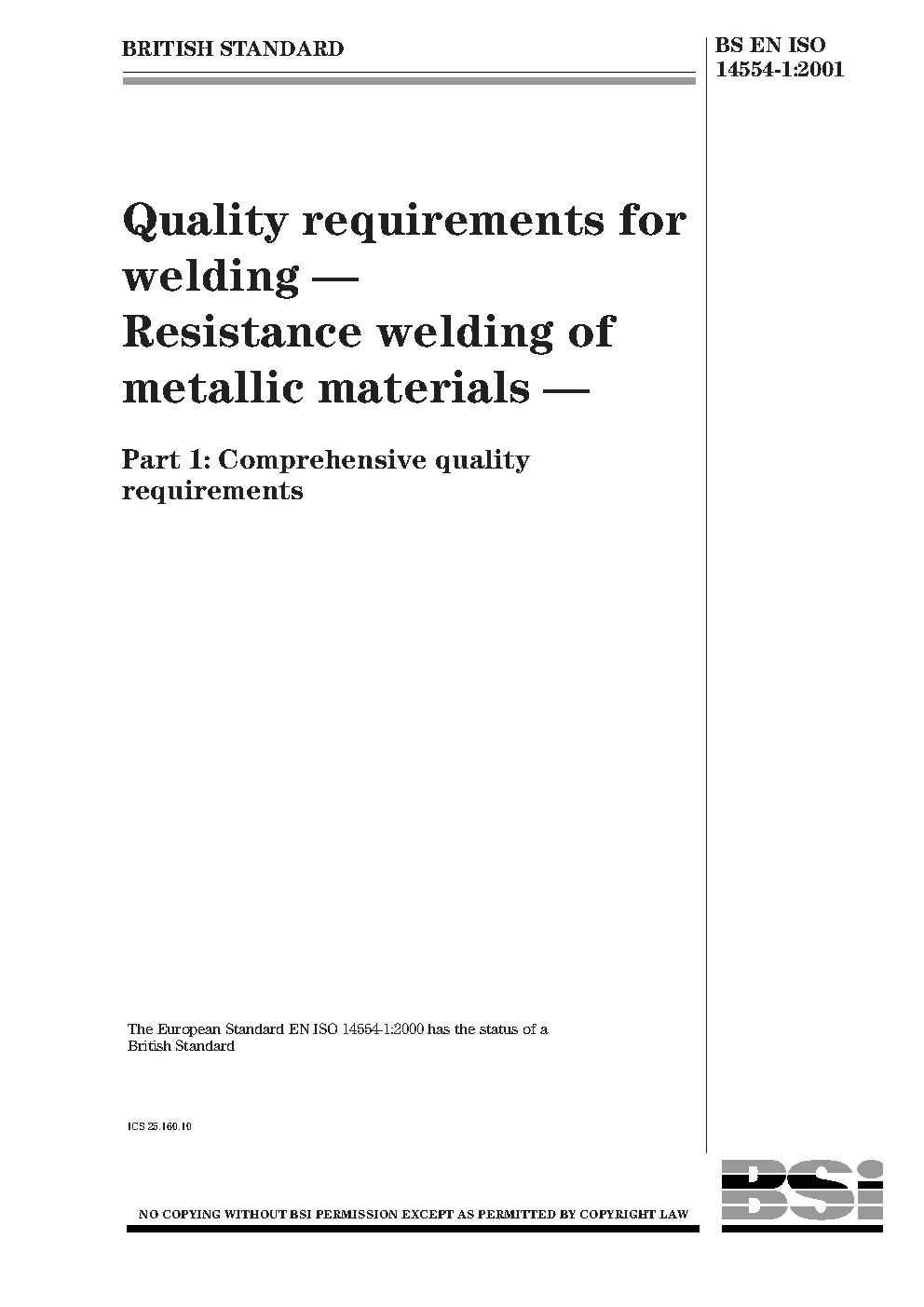 Quality requirements for welding. Resistance welding of metallic materials Comprehensive quality