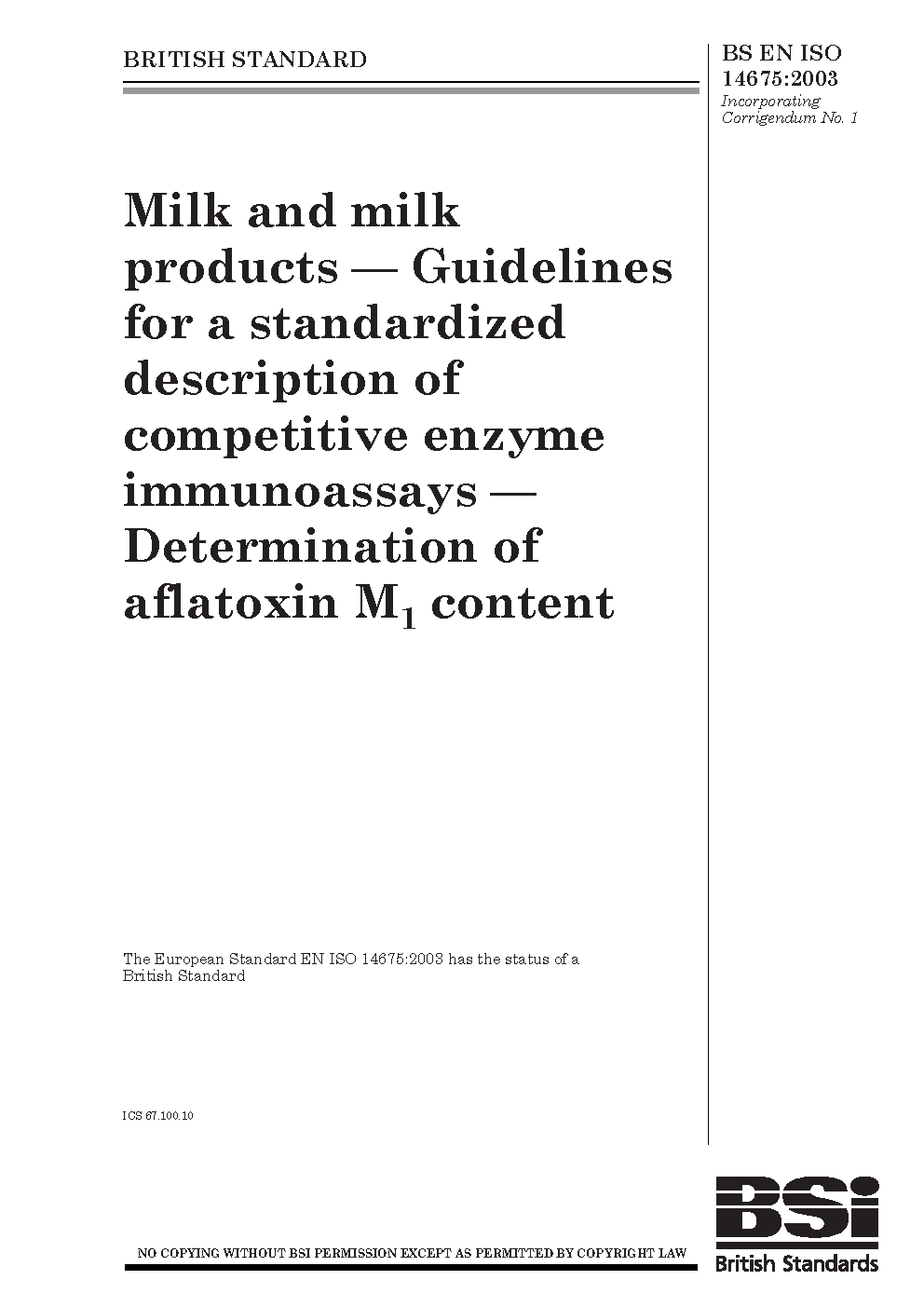 Milk and milk products. Guidelines for a standardized description of competitive enzyme immunoassays. Determination of aflatoxin M1 content