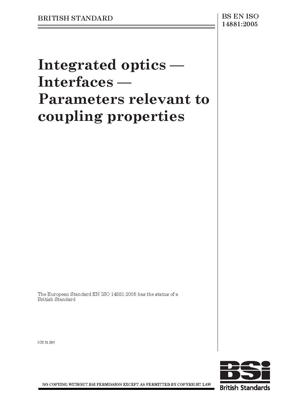 Integrated optics. Interfaces. Parameters relevant to coupling properties