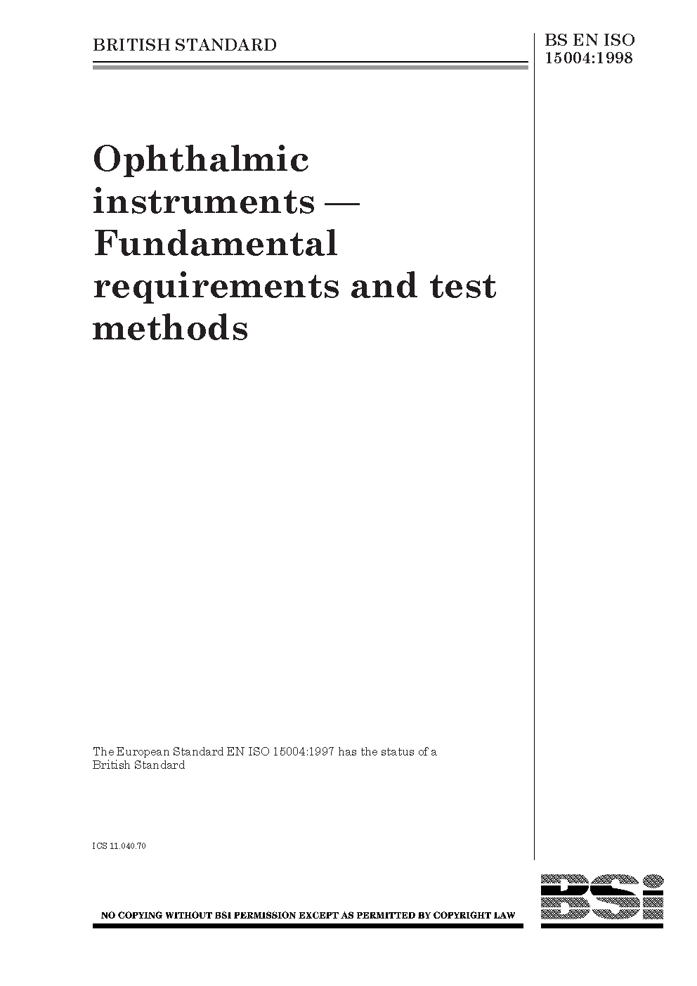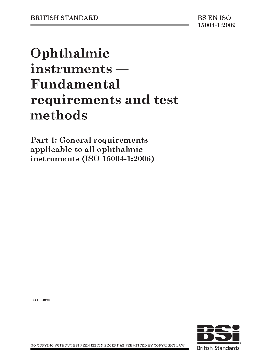 Ophthalmic instruments. Fundamental requirements and test methods General applicable to all ophthalmic instruments