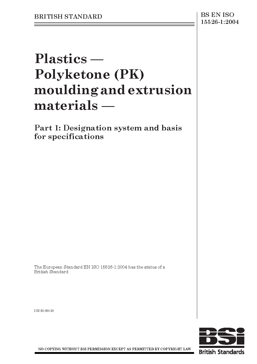 Plastics. Polyketone (PK) moulding and extrusion materials Designation system basis for specifications