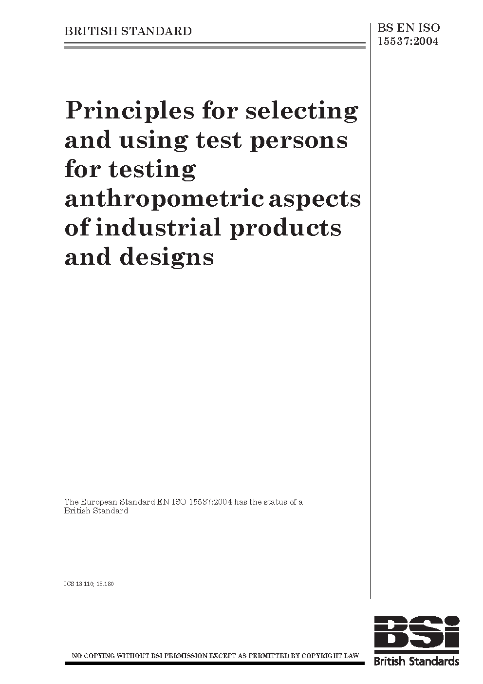 Principles for selecting and using test persons for testing anthropometric aspects of industrial products and designs