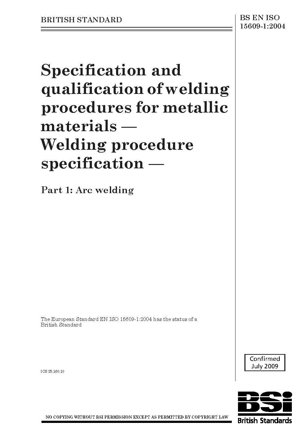 Specification and qualification of welding procedures for metallic materials. Welding procedure specification Arc