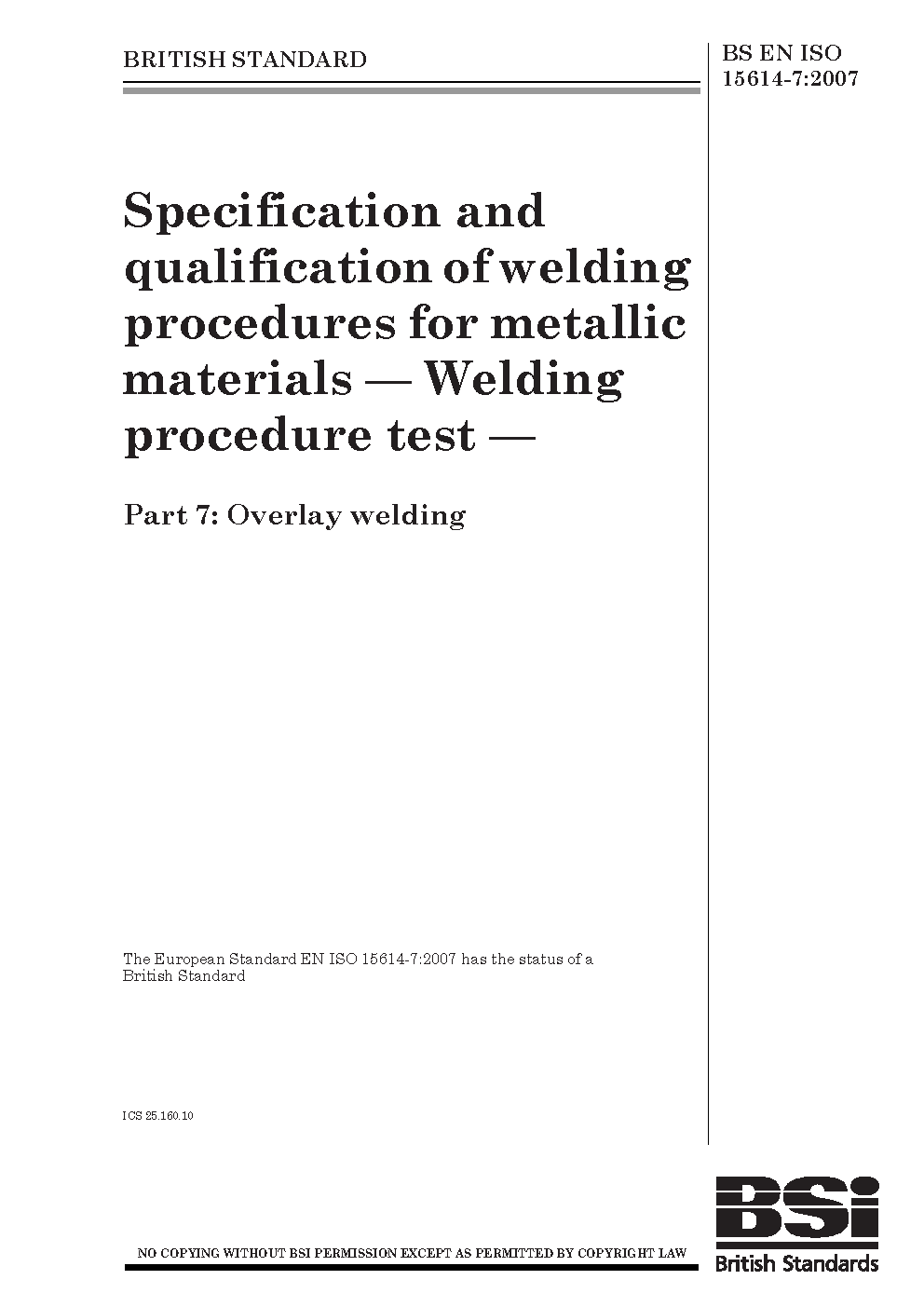 Specification and qualification of welding procedures for metallic materials. Welding procedure test Overlay