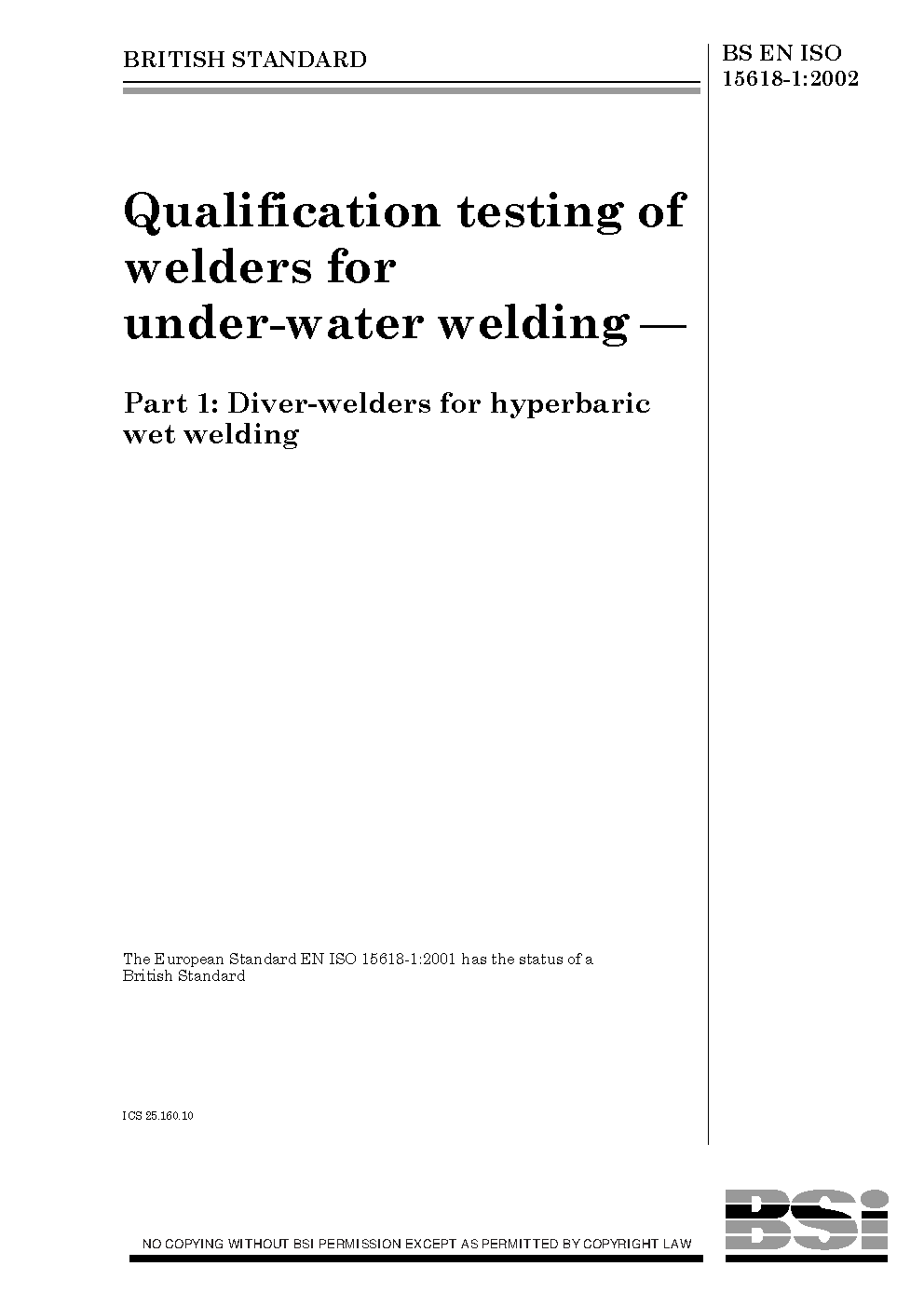 BS EN ISO 15618-1:2002