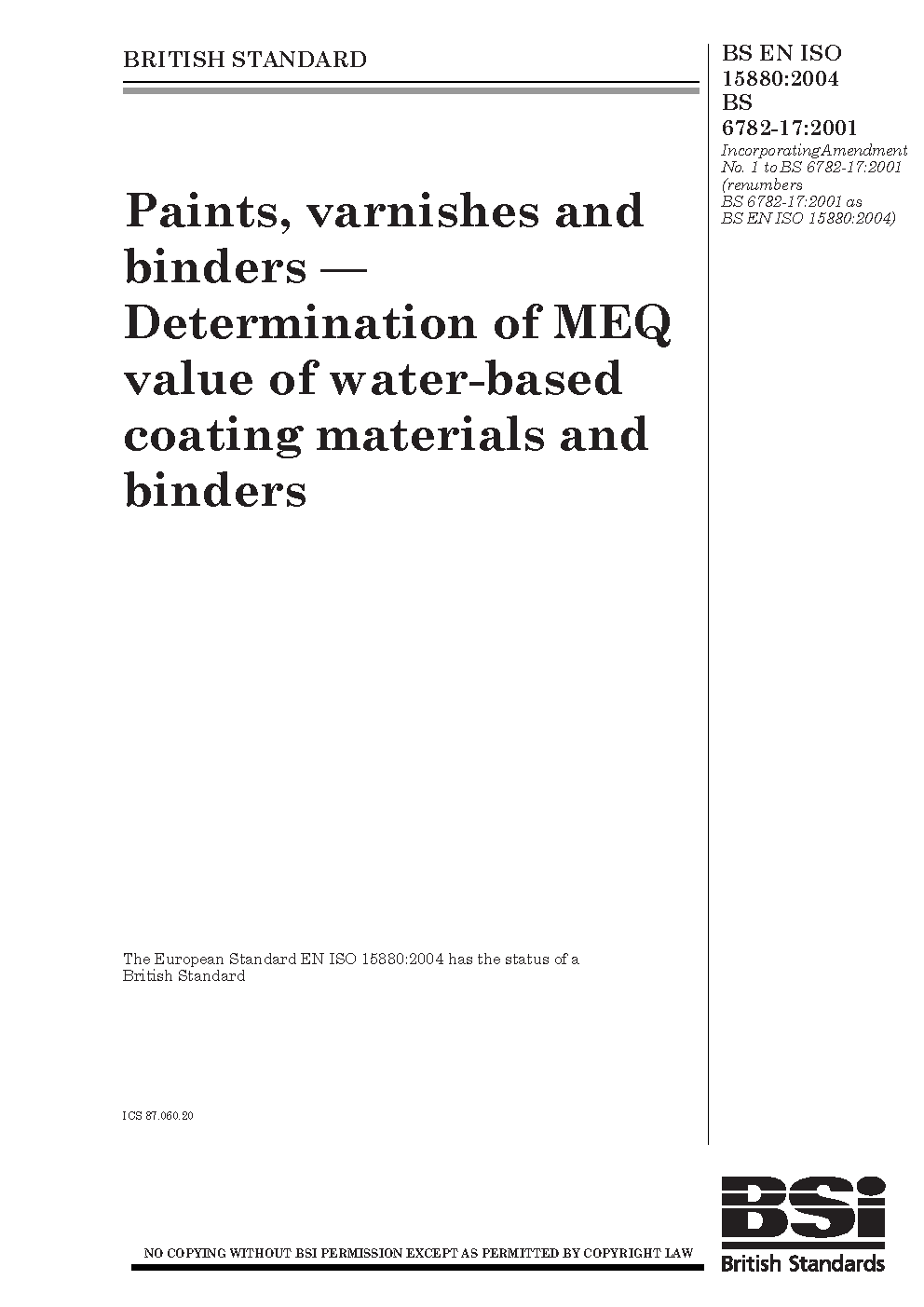 Paints, varnishes and binders. Determination of MEQ value of water-based coating materials and binders