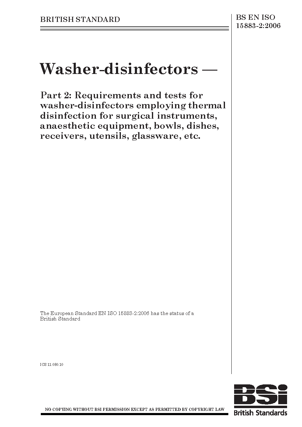 Washer-disinfectors Requirements and tests for washer-disinfectors employing thermal disinfection surgical instruments, anaesthetic equipment, bowls, dishes, receivers, utensils, glassware, etc.