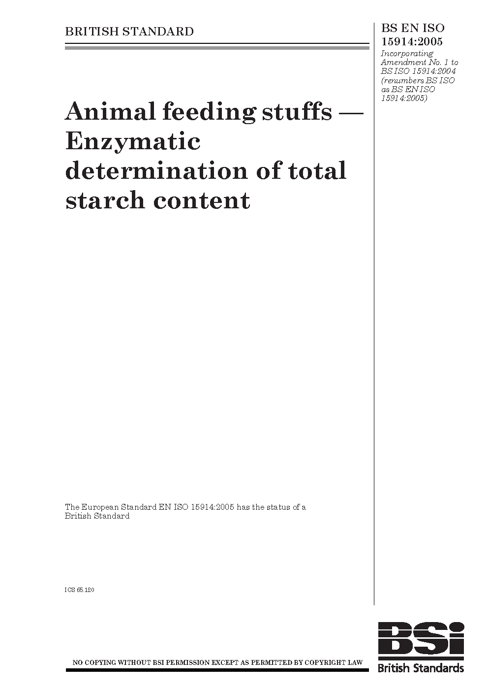 BS EN ISO 15914:2005
