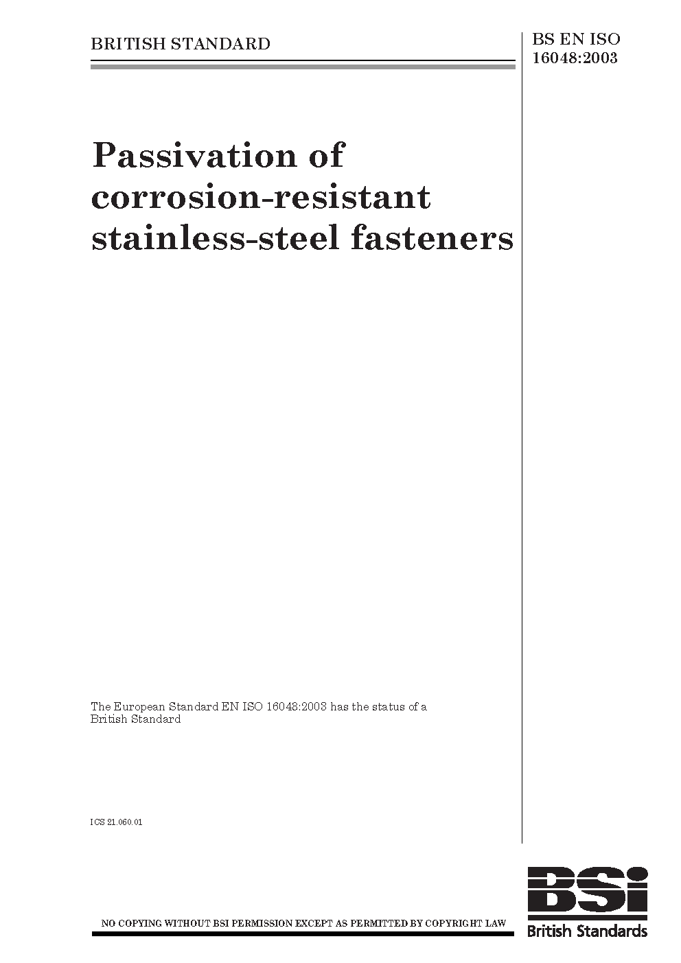 Stainless steels;Corrosion protection;Fasteners;Passivation;Steels;Corrosion resistance